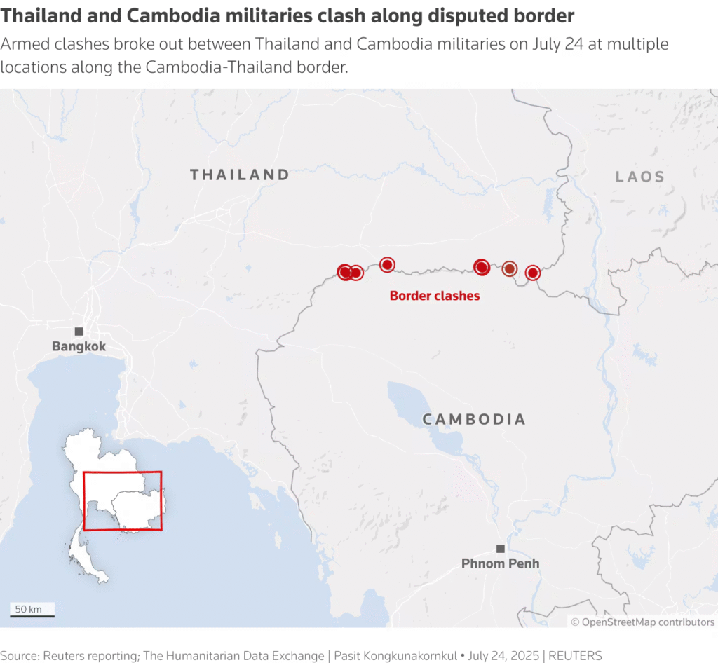 • International Appeals: Cambodian Prime Minister Hun Manet has appealed to the United Nations Security Council, accusing Thailand of “unprovoked military aggression” and urging the world to intervene.
