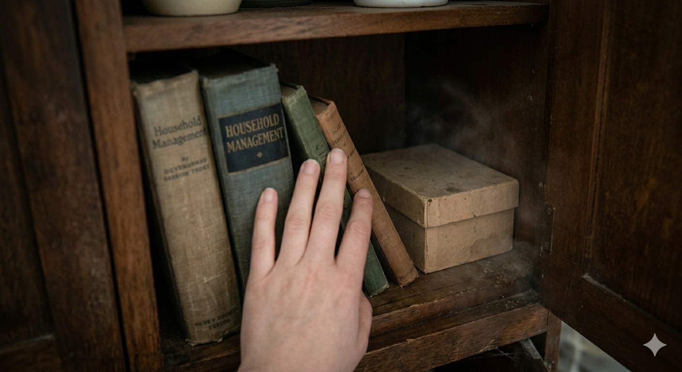 As soon as I opened it, that smell came out. Old wood, a bit dusty, but also warm somehow. Like the cupboard had been closed for years and just kept everything inside frozen in time.